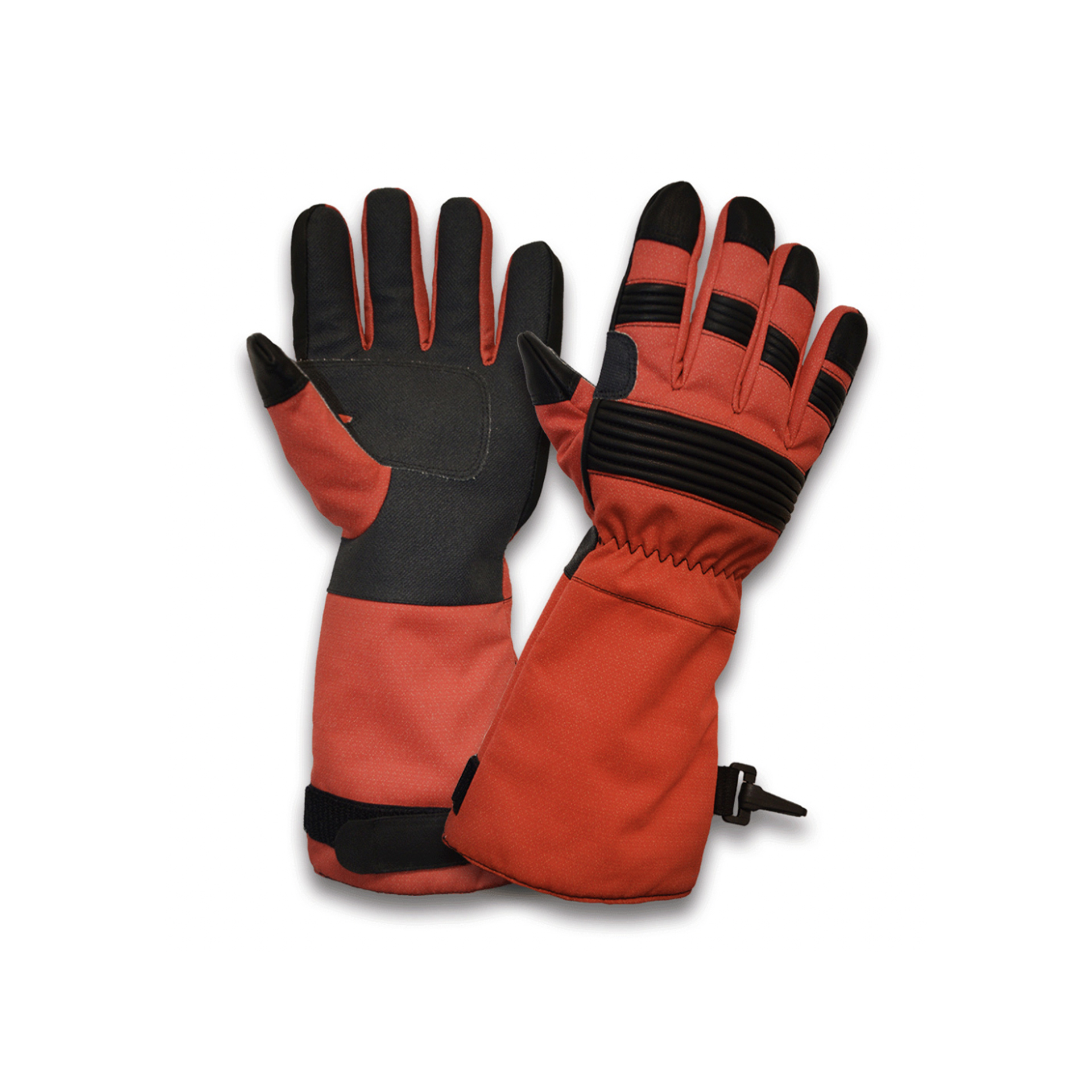 Back and thumb: Red aramid fabric with laminated aramid needle felt.